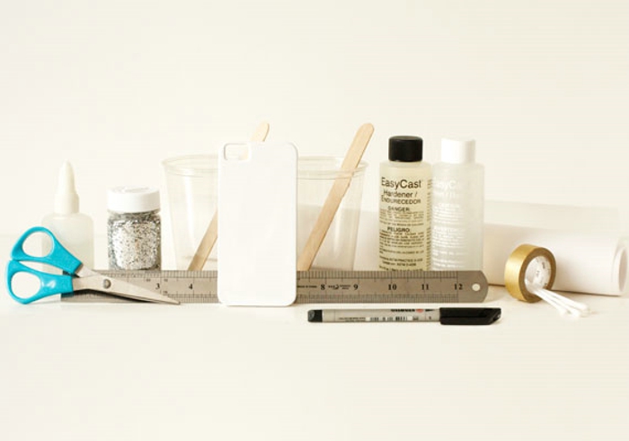 阴干的花瓣,白色手机壳,胶水,剪刀,羊皮纸,两个塑料杯,两根小木条,计时器,树脂,固化剂以及一个通风的操作台,下面让艺术家 Clare McGibbon带我们制作高逼格的手机壳: