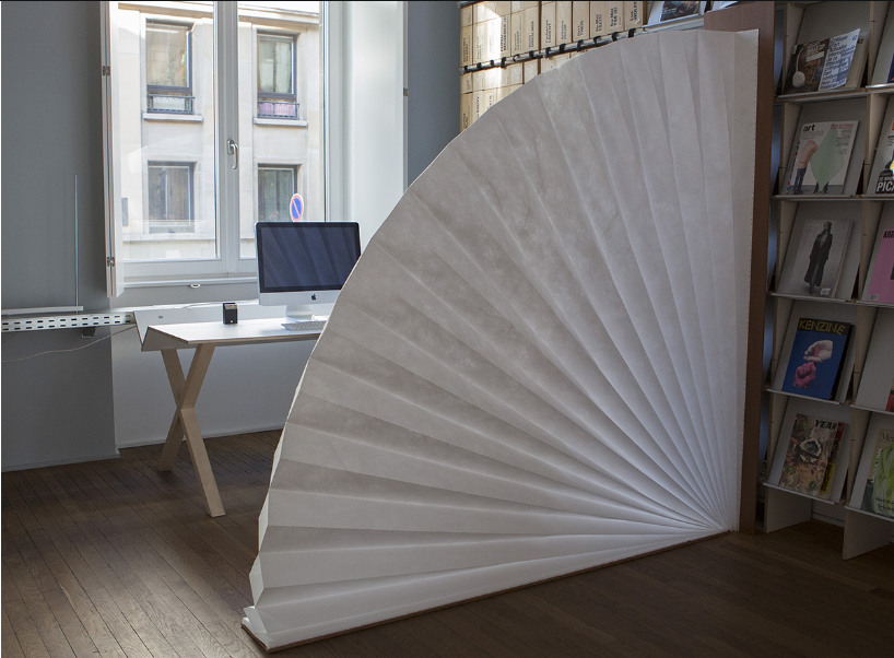 它可以被扩展成扇面,也可以扩展成一个独立的墙面,分隔出一个私人的空间,使用完再将其收放回原处,这样即不占据空间,使用起来又相当方便。