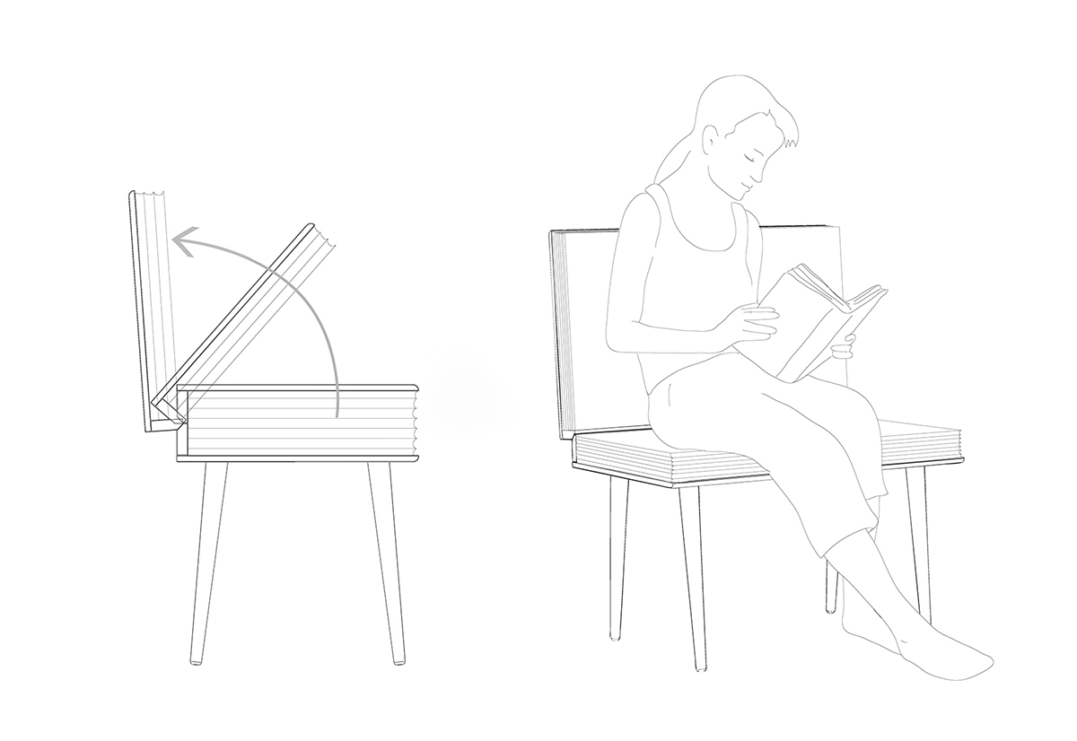 设计师从书本的结构得到的启发,一张打开就可以用作座椅,关上用作茶几的设计让我们不得不佩服设计师的创意。