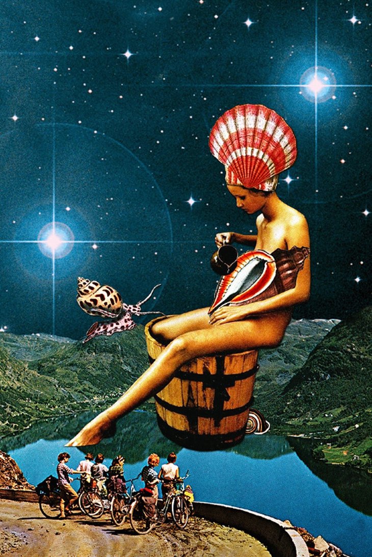 Eugenia Loli喜爱收集经典老杂志上印刷精美的复古图片,特别是 1950 年代的图片。透过 Loli 的巧思,那些图片抽离了原有的脉络,经过重新编排,组合成了带有普普艺术风格或是达达主义的超现实构图。