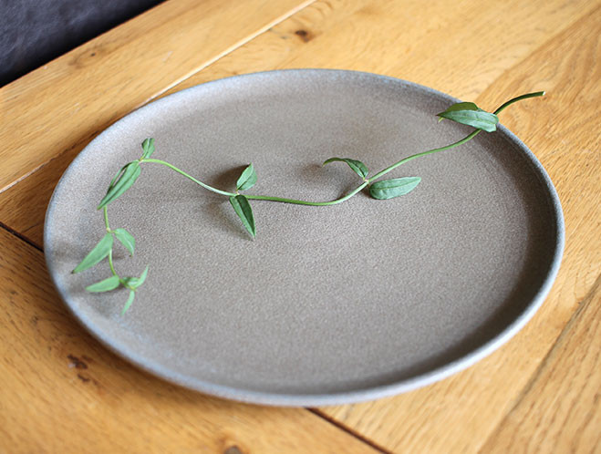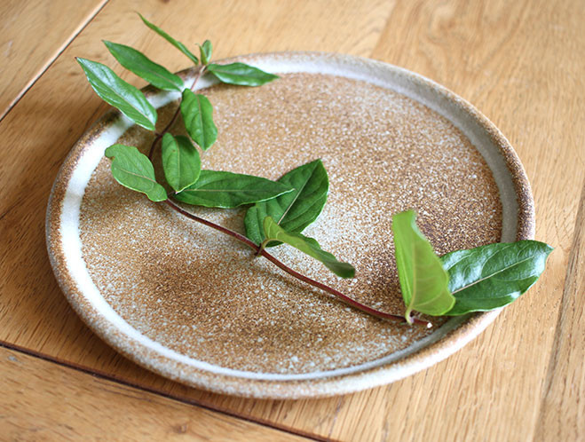 一个精致的手工餐盘,整体上看餐盘的设计别出新格,打破了传统干净整洁的餐具印象,整个盘面暗散着斑点,自然的珊瑚色底盘被天然的釉料釉成了棕色,像是经过了时间的沉淀那样,有了些许复古的感觉。餐盘边缘凸出的设计是防止食物的滑落,看得出米莎她用心的制作着每一件从自己手中诞生的陶艺品。