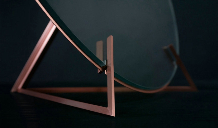 我们所看到的这一系列设计作品,有些是前期阶段的作品,包括一些获过奖的作品,还有一些是后来设计的作品,包括烛台和红酒摆放的支架,还有小型桌子和挂在墙壁的镜子,这种镜子类似中国古代女性常用的铜镜。每件作品结合几何形状,有圆形、曲线、棱角分明的图形。‘henri’品牌是一个椭圆形的水果盘,看起来很别致。
