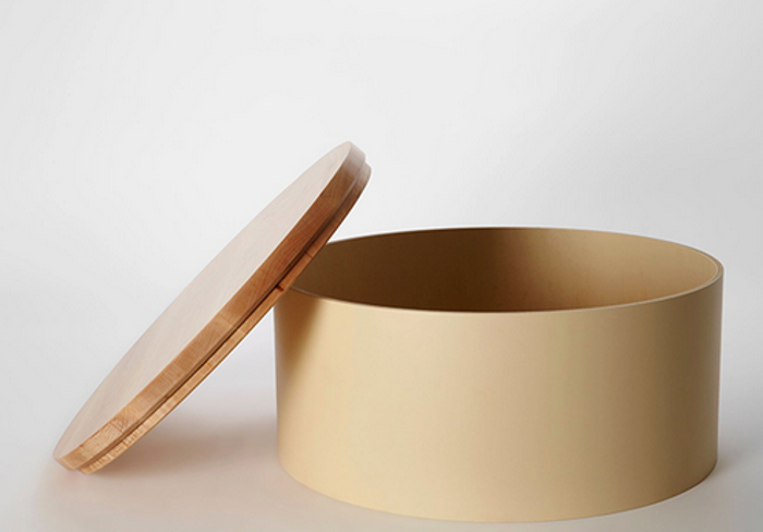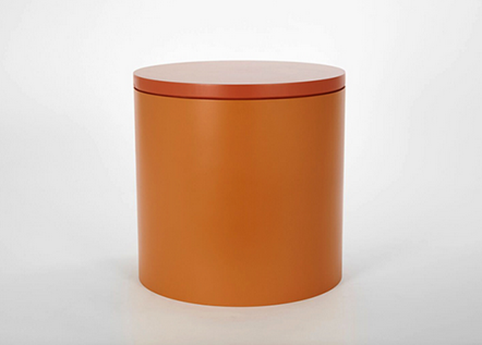《鼓边桌(Drum Sidetable)》是一款家用木边桌,它的造型非常简单,类似于三截式,上板和下板很像鼓面,而上板与下板之间是用间隔一致的木钉组合合成,这些木钉可以拆卸,因此可以在里面放东西,也是一种非常实用的家庭储物件。