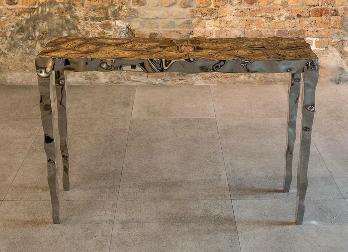 为了寻求一个具有创造性的思路,Rado从2012年初,利用他的银铸造技术和他多年各种金属的铸造经验开始创作一种新形式的金属作品。他发明了一种独特的铸造方法,利用金属固有的物理特性创造一个褶皱的立体效果的表面,称之为Mercury Effect。而者这种表面又可以像镜子一样,反射出周围的事物。