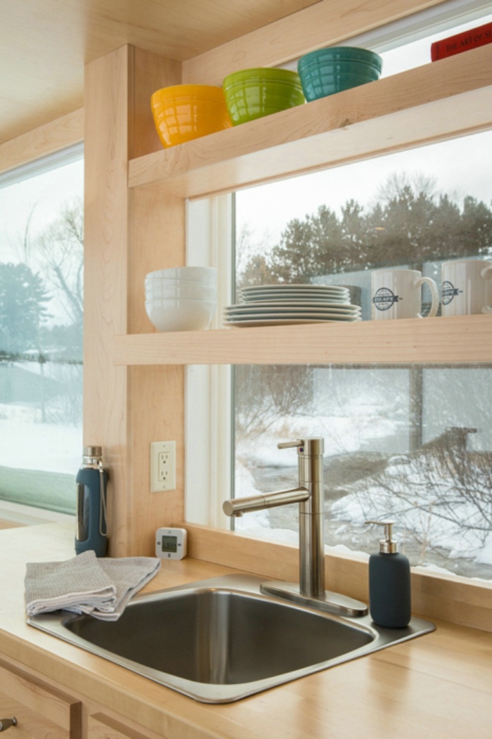 Vista是一座仅仅15平方米的房子,重量约为6500磅。它的外部是由耐候钢框架和雪松板构成,底部是一个废弃的拖车底。这样的设计便于Vista的移动,随着心情变换环境。
