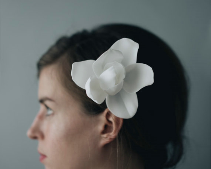 Collected Edition的每件作品,都让人联想起西北太平洋海湾的蕨类植物,干净、简单、淡雅的木兰,有着美好寓意的雏菊,灵感来自桉树的大胆的花皇冠、干净的线条和波澜具有浪漫气息的箭、微小的多肉植物首饰、发饰、花束,无不诠释着逼真的自然的浪漫主义,足够引人注目,做万人瞩目中最时髦的新娘。