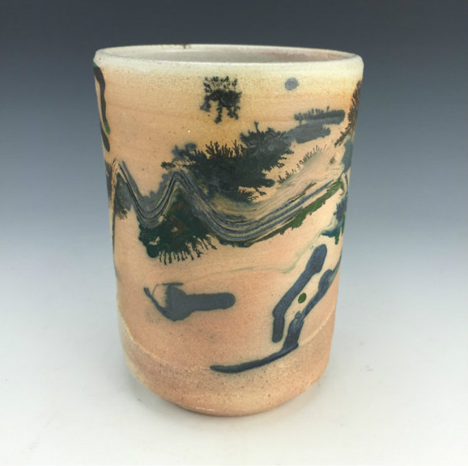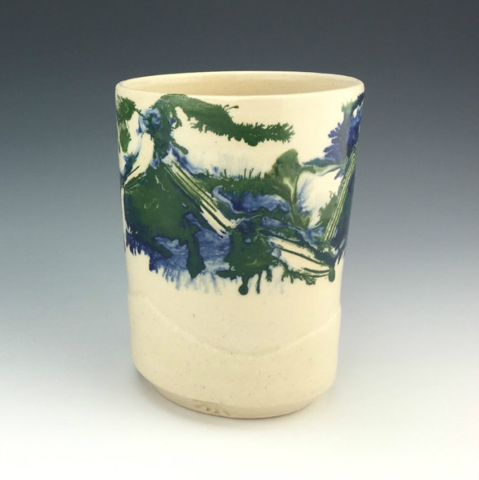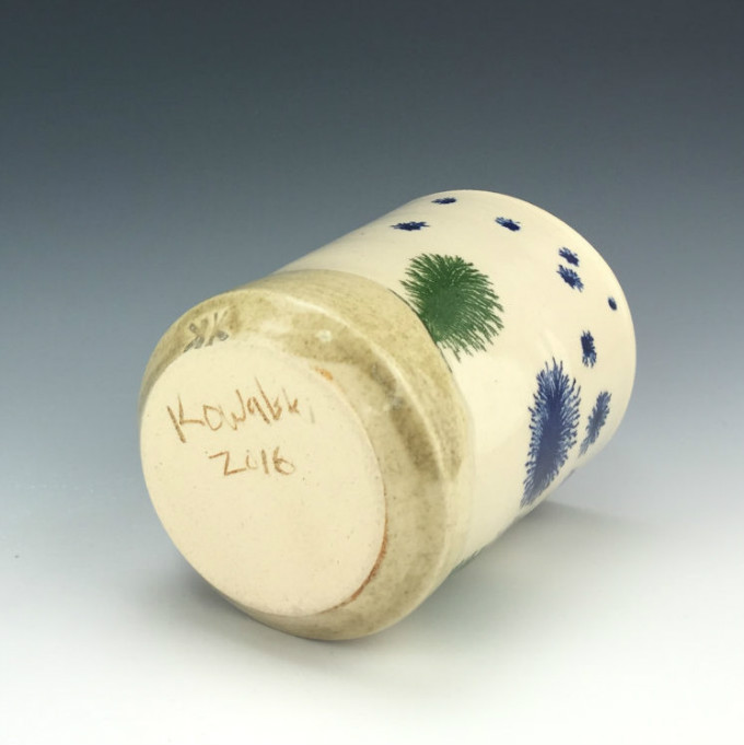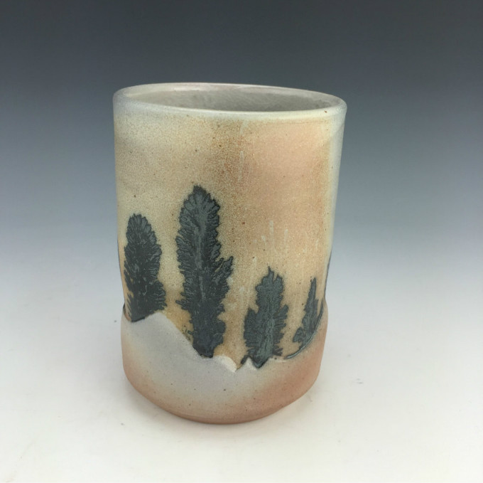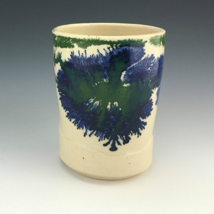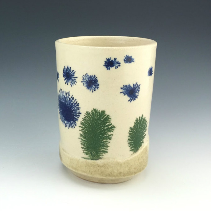 Kowalski Pottery工作室创作的摩卡扩散杯系列,就像在陶瓷上播撒生命的种子,拔地而起的松柏,高山流水,云雾缭绕,热带沙漠,黄沙飞扬,仙人掌和蕨类植物,蒲公英和飞絮,像风像雨像雾。近处写实,远处抽象,色彩微妙,意境丰富,俨然是一幅生机盎然又富有诗意的水墨画。