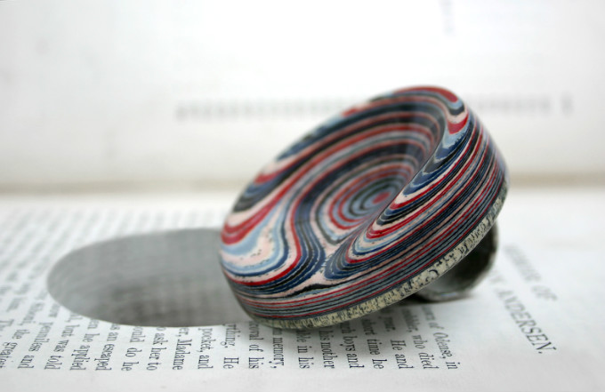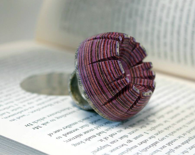 定居在伦敦的珠宝设计师Jeremy May便是一个运用独特的处理方式,用雕刻、层压、抛光等工序,捕捉纸之美感的艺术家。2007年,设计师为了庆祝结婚一周年,给热爱文学的妻子准备一个独特的礼物,结合结婚一周年即为纸婚的社会说法,他从纸这个媒介入手,作出了第一枚“文学戒指”,深受妻子的喜爱。于是,艺术家在妻子的鼓励下,开设了Littlefly珠宝设计工作室,开启了文学书籍手工首饰设计。