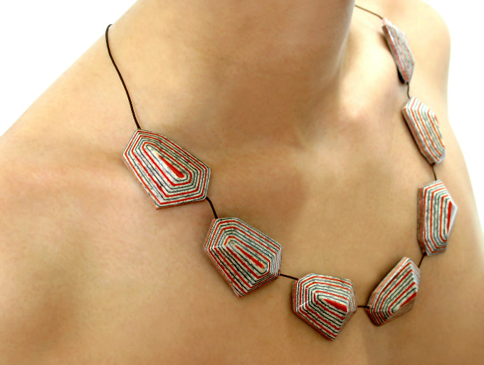 多彩的层次,几何结构构图设计,美丽的曲线,以及时尚首饰独有的光泽。每一件作品均是独一无二,赏心悦目,不可复制的精品。除了漂亮独特得外在形态之美,每件作品也极具内在美,原本书籍的文字、图片均在首饰上还原传承,尽管这些信息只能在珠宝的表面呈现,但正是这些若隐若现的信息,引发人们窥见整本书籍内容的求知欲是设计最大得亮点。