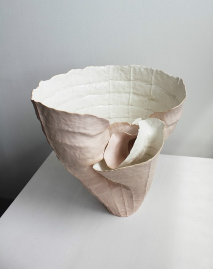 Kim从事陶瓷工作已经超过十五年,她认为陶瓷这个媒介是她表达艺术感知最好的方式。她设计的荷叶仿生陶瓷飘逸灵动,以柴烧的方式去表现瓷器的色泽和肌理,古朴大方。