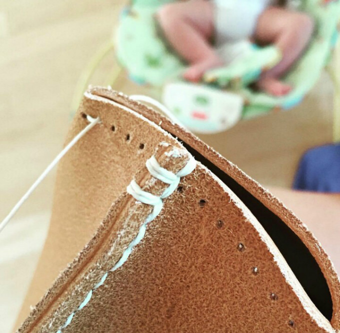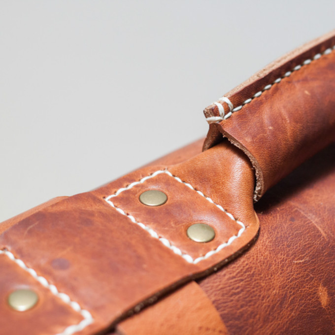 要完成上面的英伦邮差包大概要缝上两千针左右(这是一件非常磨人的事情…小编试过手缝一个马鞍包..那酸爽T T),但实在先生依然坚持手缝。因为他觉得这是连接原是皮料和最终成品的桥梁。他喜欢单纯用双手而不依靠机器去制作,因为这可以在工作的时候让他到达放松甚至接近冥想的状态。