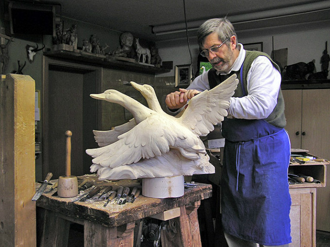 在意大利奥蒂塞伊的一个工作室,Giuseppe Rumerio依旧专注于传统的木雕艺术和工具。他是世界上最伟大的动物雕塑家之一,14岁开始做学徒到现在他已经雕了三十多年的木头了,但是他的热情没有丝毫减灭。他热爱一切自然有野性的动物,而他觉得是木雕他和它们之间沟通的桥梁。