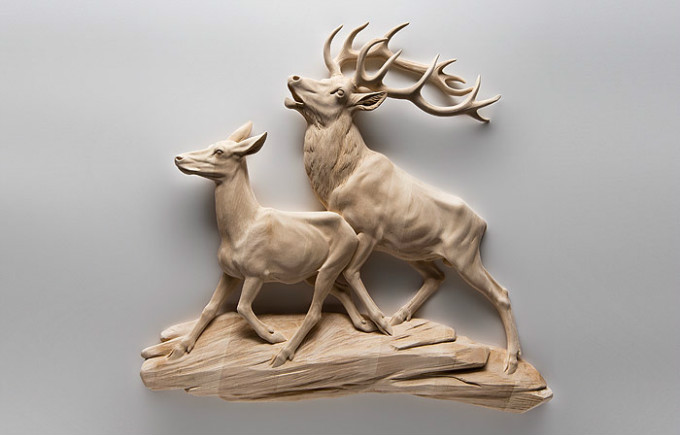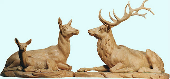 山羊,羚羊,梅花鹿和麋鹿,它们除了角都有相似的体型,Giuseppe Rumerio能够依靠他多年来的观察力和手头功夫在动态上和肢体细节上鲜明的区别出它们之间的差异。山羊的强壮争强好胜,羚羊的小巧灵敏,梅花鹿有点邻家小女孩的感觉,麋鹿庄严带了点仙气。