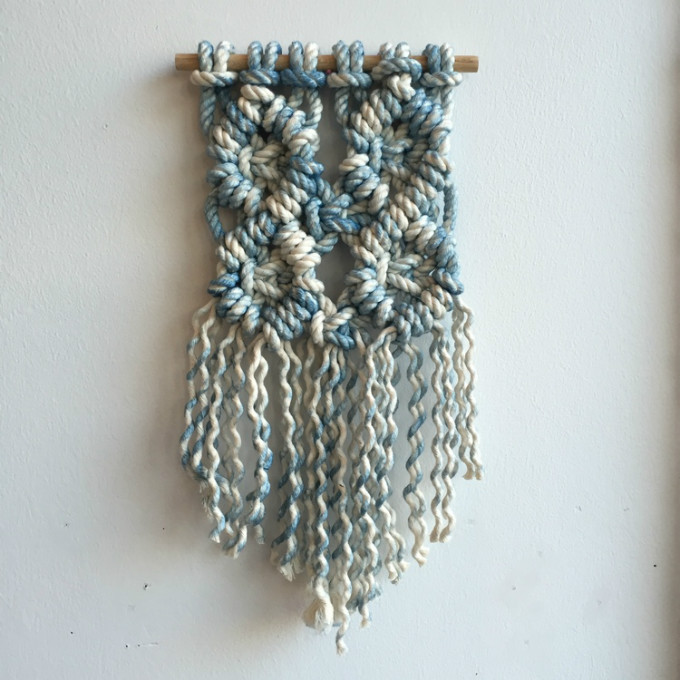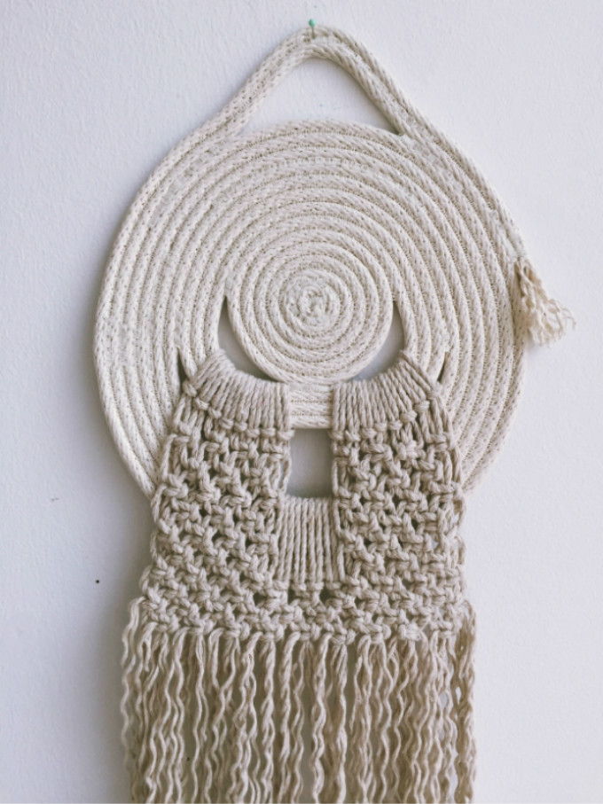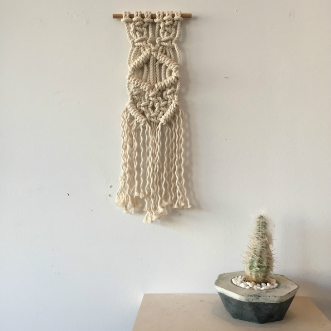 Angela认为自己的作品是有力量的,她在用心制作。她不断尝试多变的形态和纹理。在墙壁挂坠这一组创作中,她用绳索结编制出流苏花边,既复古又生动。