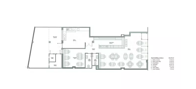 项目共计400平方米,餐厅占据建筑的一层楼,并成为美食爱好者见面交流的好去处。
