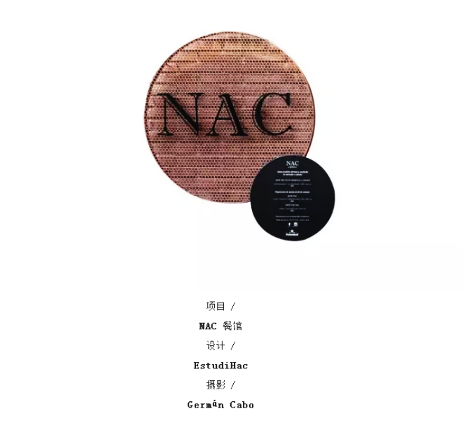 NAC餐厅设计是EstudiHac工作室在西班牙瓦伦西亚的一个项目。瓦伦西亚是西班牙的第一大粮仓,而NAC又因不同品种水稻闻名,所以设计师就追寻rice(米)的概念发展,以抽象的圆形代替大米的外轮廓,最后通过质感和图形将NAC呈现出来。在EstudiHac工作室设计下,把餐厅文化发挥得淋漓尽致。随处可见设计,从穿孔的铜盘到前台设计,EstudiHac工作室将品牌文化进行到底。