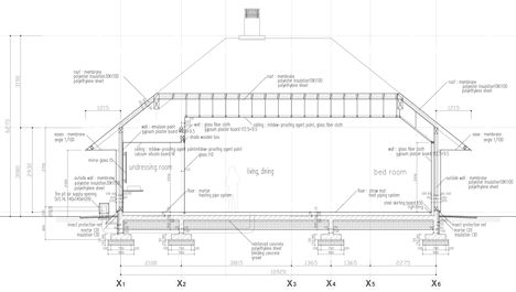 地板在chise基础上抬高防潮,并在中心区域形成一个壁炉空间,在加热地面的同时让房间吸收由它产生的辐射热,所以地热采暖系统能够有效的节约能源,天花板和地板内部都设有传感器以收集抗震相关数据信息。所以尽管房子面积不大,但造价却并不低,如果实验成功可能会进行量产以降低造价。