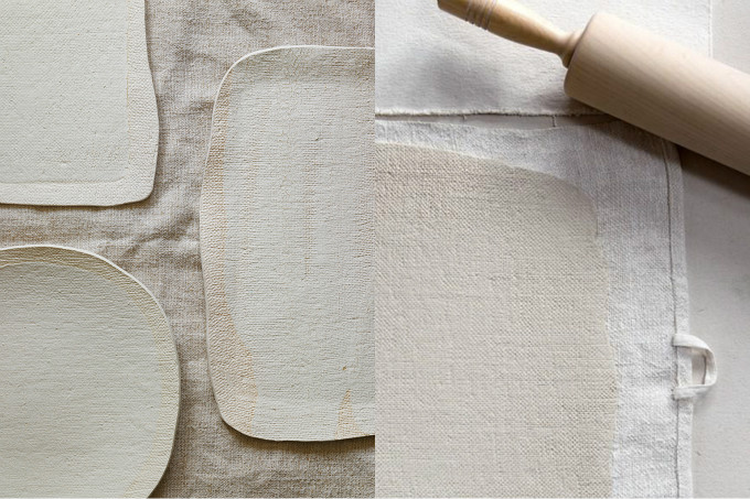 除此以外,我特别欣赏她将布料质地融入盘面及运用水彩作画渲染的巧思,每一件都是由手工完成,各具姿态个性,乍看之下很跳跃活泼,但质朴的手感表现,给予盘皿足以盛载彰显食之美的大方沉稳
