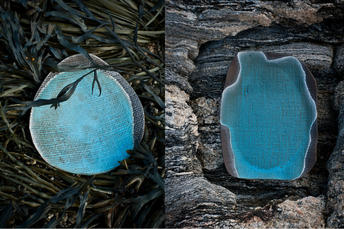 陶盘造型简约、用色勇敢。设计师特别善用蓝色、绿松石色与白色,并且在陶瓷表面制作出亚麻或者粗麻的质感,用釉料造成粗拙与光滑质感的对照,每一件都是独一无二的。