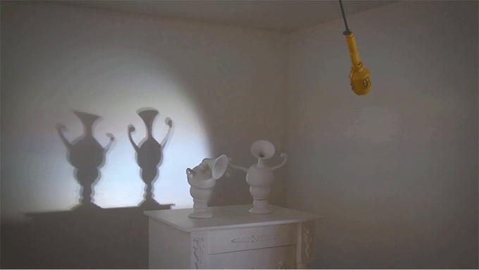 乍一看,这些雕塑相当平凡:只是两个残缺的瓷器花瓶坐在一个木制立方体的基座上。但是,只要点亮摆锤光源,就会发生有趣的事情——雕塑“活”了起来。