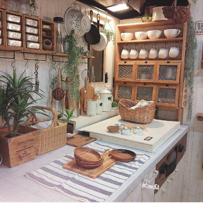 不论是“柴米油盐酱醋茶”还是“琴棋书画诗酒茶”,或养身,或养心,现代人总是端着一杯茶或者咖啡,品味四季,品淡人生。有条件的话,相信很多人都会在厨房或者客厅,设置这样一个茶水间。茶罐、咖啡罐和藤编收纳筐可以说是营造大自然气氛的绝佳组合,收集同种颜色的收纳筐也比较容易。