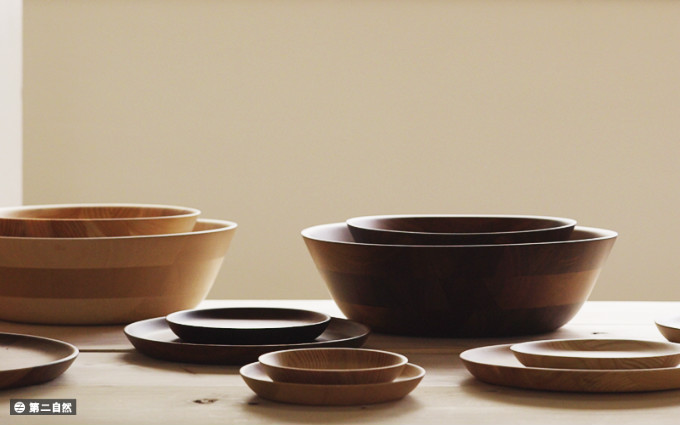 HIKIYOSE则把木材分割成大小不同的三块,再想累积木一样,做成立体的碗型,再进行加工。