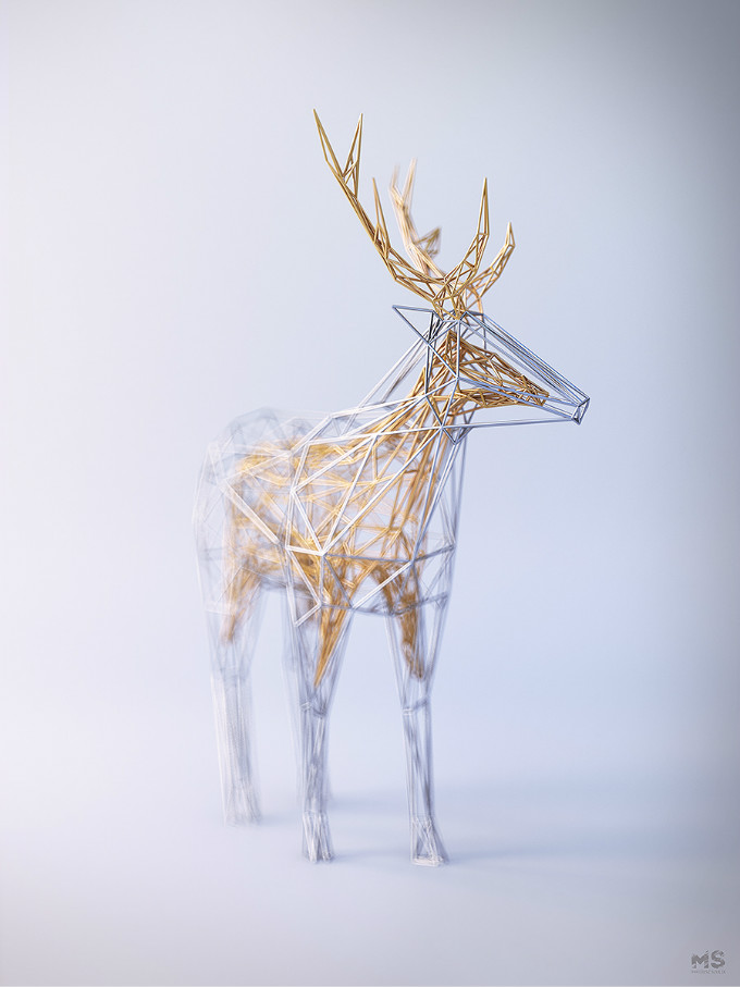The Wires V2,是波兰艺术家Mat Szulik近期的项目,这期项目耗费了他半年时间之久。他创建了马、甲虫、鹿、狐狸等动物形象,用具有金属质感的金银搭配,放在白色鲜明的环境中,看上去非常真实,气氛又如梦境般玄妙。