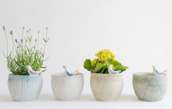 素净的陶器搭配上色泽明艳的花草,
