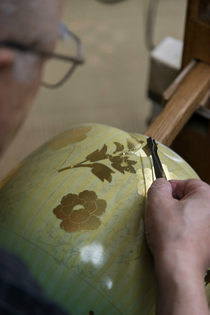 釉里金彩:贴上金箔之后再上透明釉药的技法。