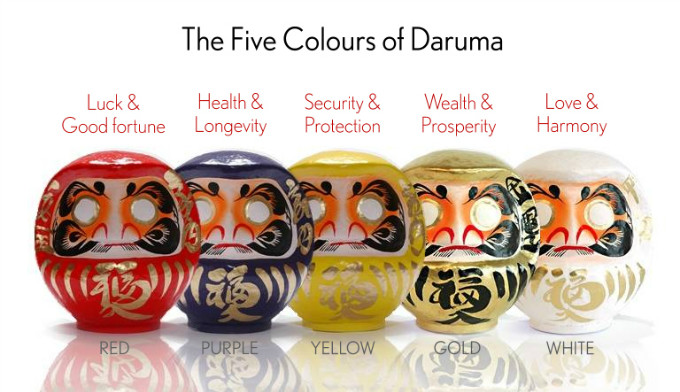 达摩的颜色不同,其包含的祝福意义也不同。现在日本达摩的主要产地——群马县高崎市,生产的达摩颜色多达15种。