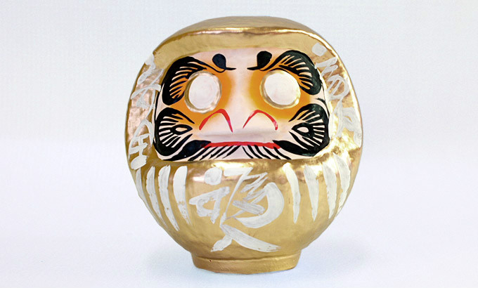 达摩最有意思的地方,在它的眼睛。一个没有被许过愿的达摩是没有眼珠的(或者只有一颗眼珠)。人们在新年初始祈愿之时(或者购买达摩之时),用墨水给达摩画上右眼珠,称之为“开眼”,等到年末大晦日(日本除夕夜)那天再画上左眼珠,并在年初参拜时将达摩留在神社,神社会将其统一烧掉,称之为“满愿”。这样,就完成了达摩和好运气的辞旧迎新了。