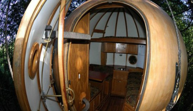 与木质球形小屋相比不同的是,UFO树屋旅馆更具有现代感。它是由上下两个半球形的金属外壳组成的,极具视觉冲击力。这天马行空的建筑设计好像一件件艺术品。最神奇的事它拥拥有UFO 同款自动旋梯。和科幻小说中描述的一样,回到树屋就像外星人回到飞船,而下一秒就要启程飞向外太空。