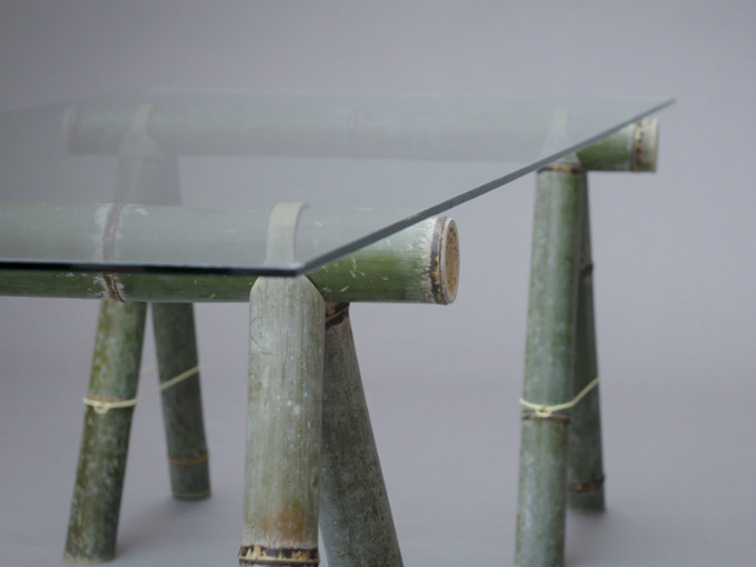 一对儿竹架可以撑起一个桌面,再配一对儿长椅即可成一套竹几。如果你有一套小院子或者一个摆满植物的阳台,那来上一套这样的竹桌椅顿时就会多出几分生机。