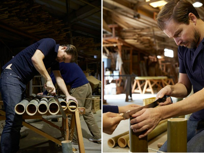 这套Soba竹系列的平板椅架出自一位德国设计师Stefan Diez之手,其最大的特点就是出了绳子之外全靠极具巧思地对竹子进行解构来完成椅架的组装,而不使用任何其他配件。