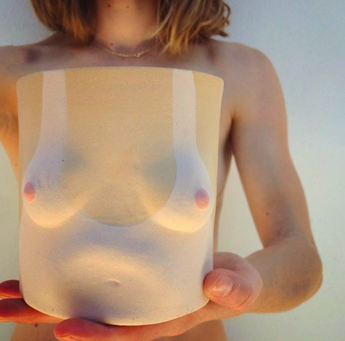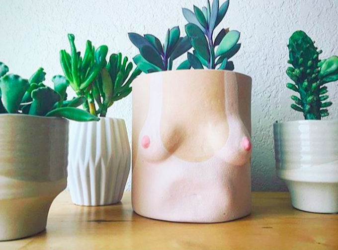 女性的胸部常常出现在艺术设计和雕塑作品里。当他把这个想法落实在植物盆上,让每一个陶瓷作品都长着一对释放天性的胸部和凸起的乳房并发在他的ins上,他的朋友、朋友的朋友都喜欢上这个与众不同具有艺术感的小器物。
