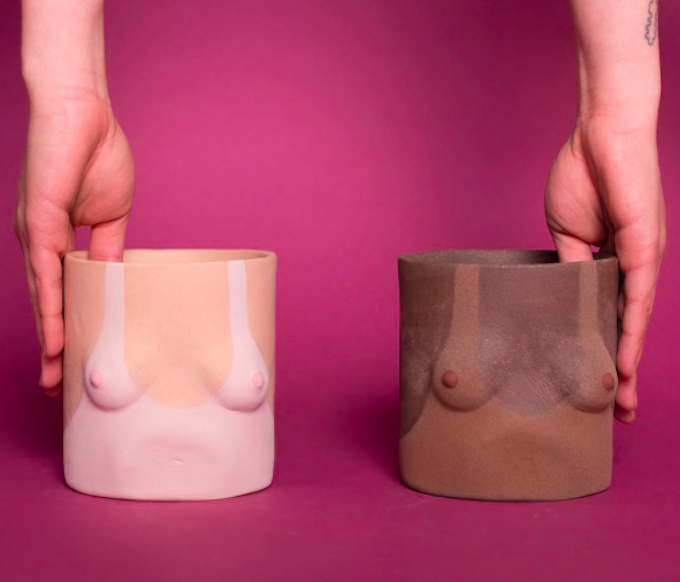 Isaac Nichols 采用了古老的人体浮雕手法,将陶瓷植物盆做成了立体的艺术品。 主打作品的是这些看起来很有视觉冲击力、真空出镜的咪咪植物杯,因为独特,在网上大受欢迎。