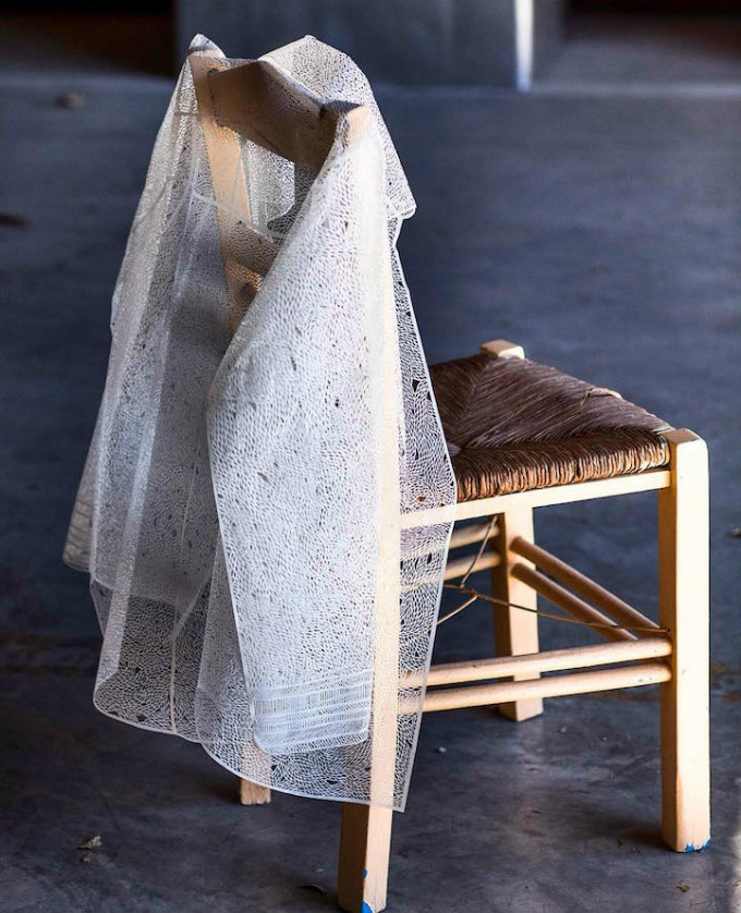 每个新想象的纸纺织品被切割成复杂的图案,