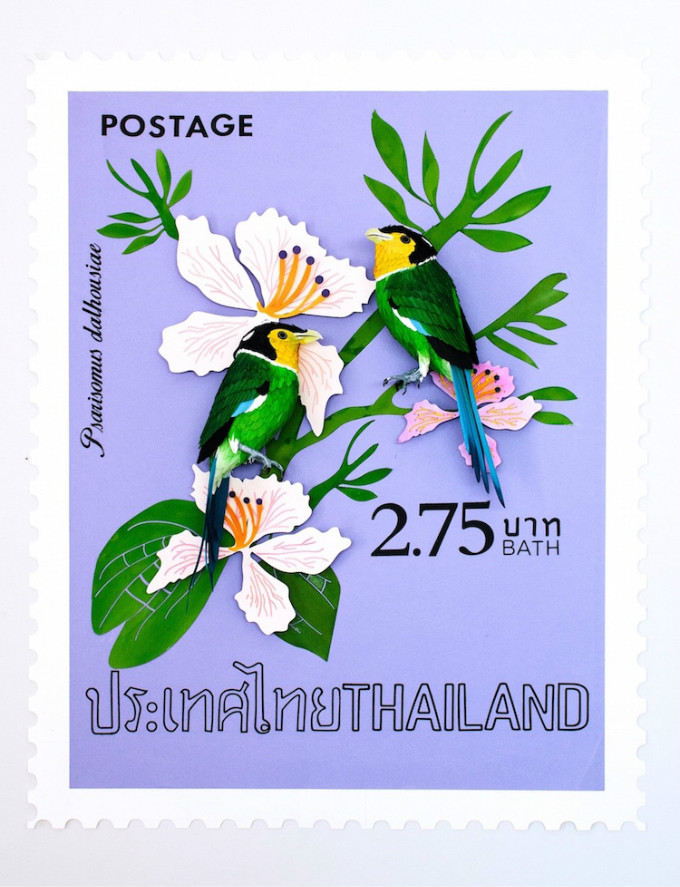 精美的纸制雕塑融入了来自世界各国的特大邮票。