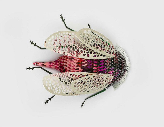 用再生纸制作的精美昆虫