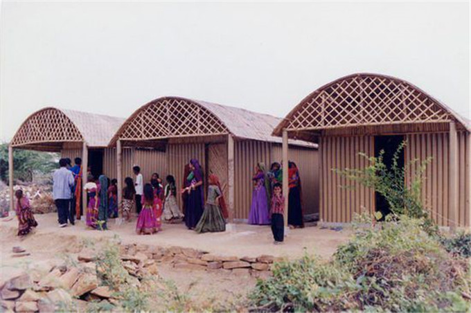 该学校的主要结构都由低成本并且安全的特殊纸管搭建,