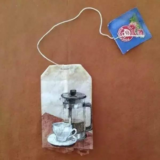 某一日,她突发奇想把画画上了茶包。