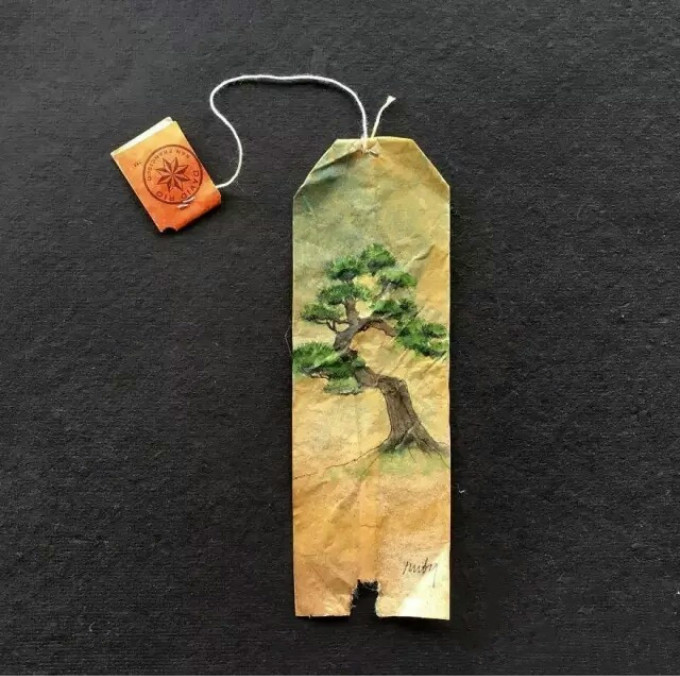 用茶包上的微型绘画捕捉每一天中的点点滴滴。