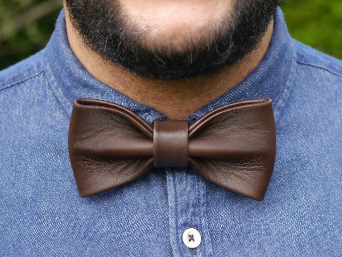 他为自己的皮革领结感到十分自豪。