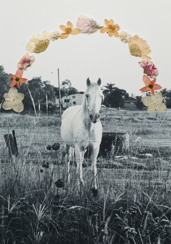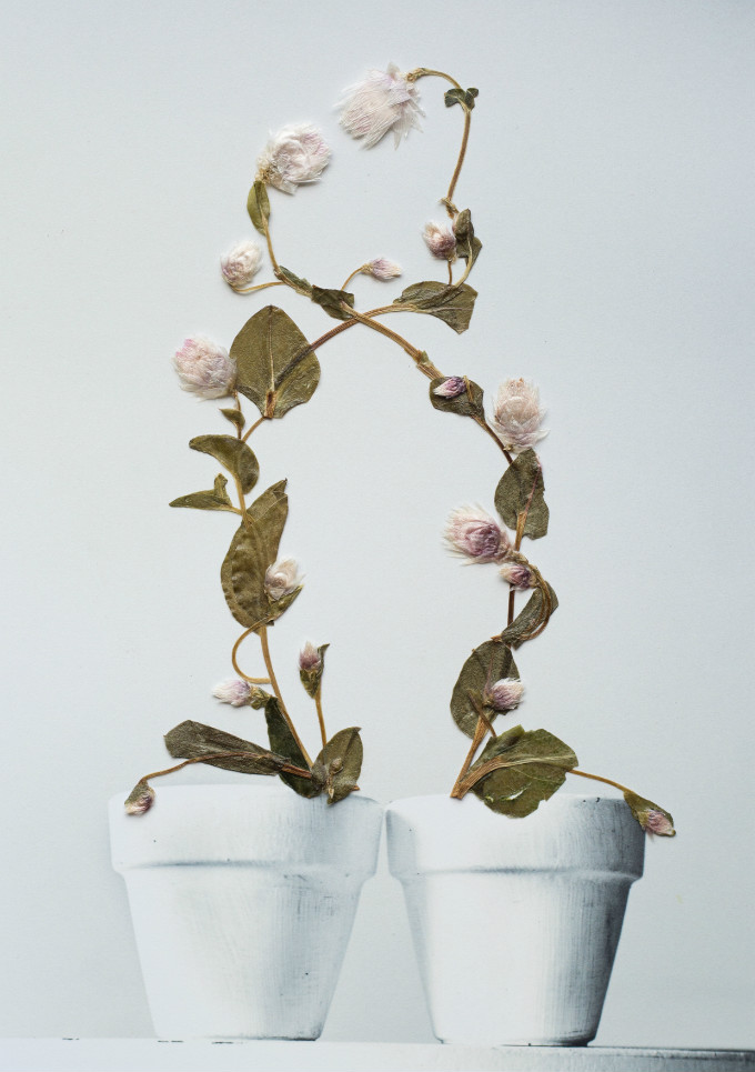 菲比·霍夫斯塔德将压缩之后的花朵粘贴出牛角的形状