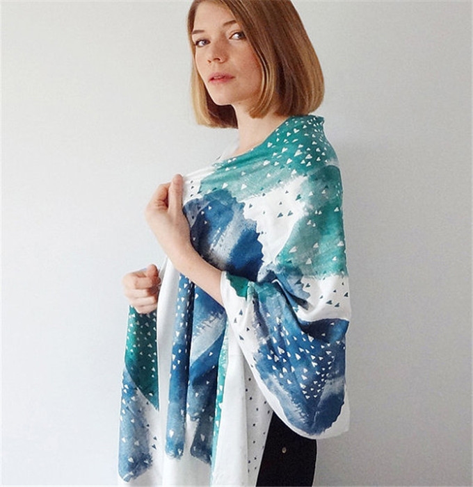 到装饰着繁茂花朵的围巾,