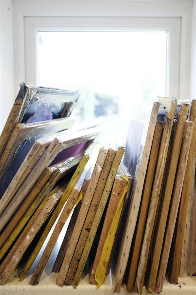 工作室里,Lee做丝网印刷,并包装订单。