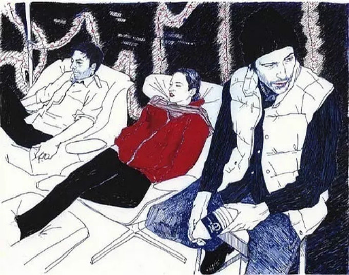 ,画面中各种人物平静的神情与动作,