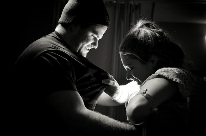 这些照片拍摄于他们的伴侣分娩几分钟后,