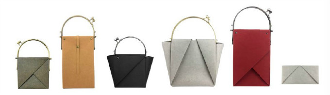 虽然她的故事跟别的创业家大同小异,但她的作品却是独具一格:这些包袋看起来极具现代感,跟传统意义上的包袋相差甚远。bobo通过折叠,包裹,组合的多种形式把原本平面化、柔韧的特殊环保材料“水洗牛皮纸”制作成坚毅的有空间感的包饰。