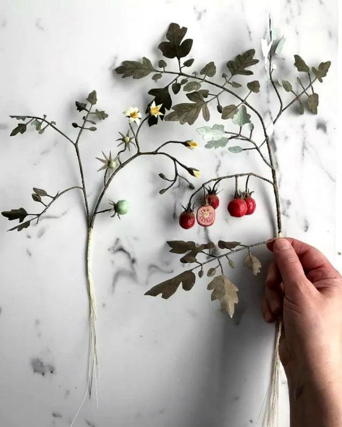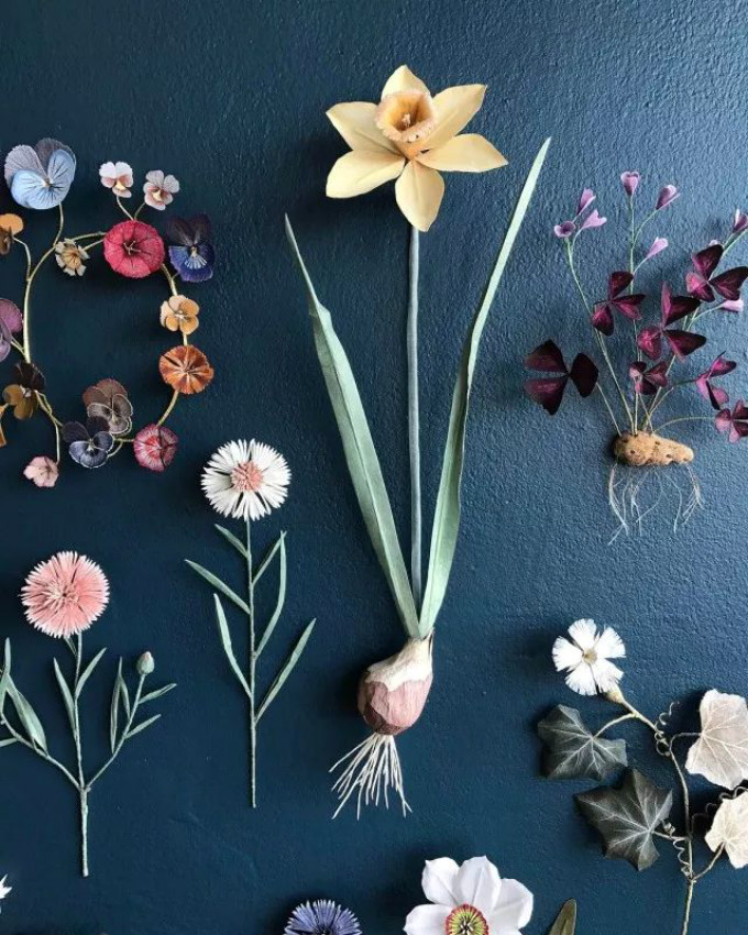 将一张纸变成了栩栩如生的鲜花、蔬菜和蝴蝶,